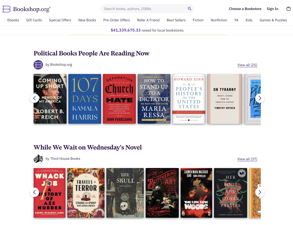 Over $40m raised for local booksellers. This is a very large commercial book marketplace with a community spin.