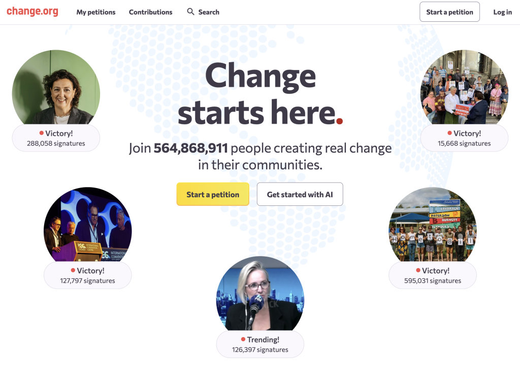 Another great name. A petition and advocacy site monetised via ads and premium features, run as a for-profit with social mission. This site gets ~40M monthly visits and has a global rank of ~1,800. What a powerful concept and beautiful execution.