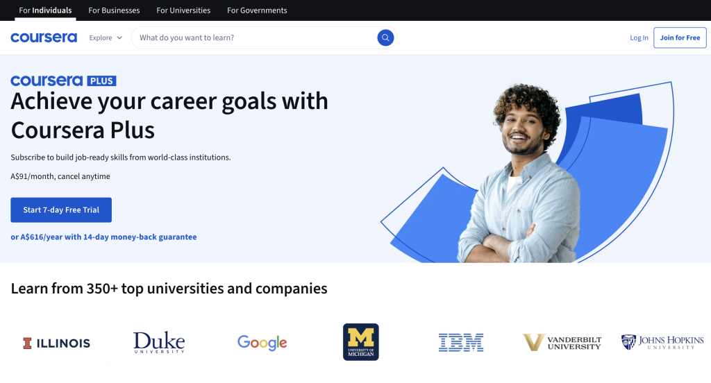 Yet another .com redirecting to a .org. Coursera has a clever mix of free and paid courses.