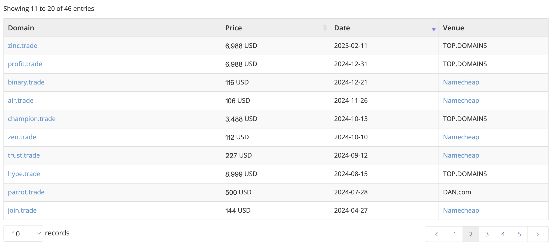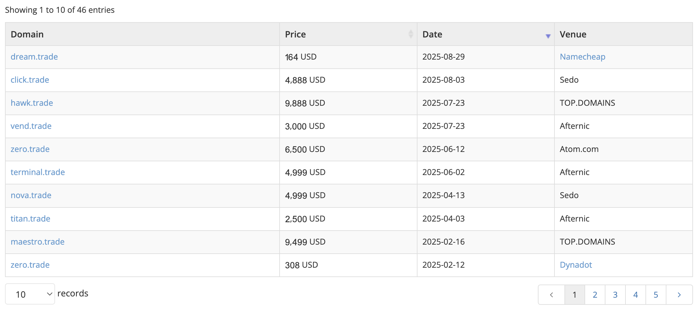 Notable .trade sales as reported by Namebio that show the market has appetite to invest in this extension, with values increasing in 2025 (shown in $USD):